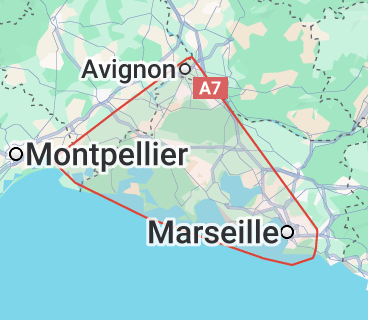 Notre zone d’intervention s’étend sur tout la zone Marseille – Port Camargue – Avignon.